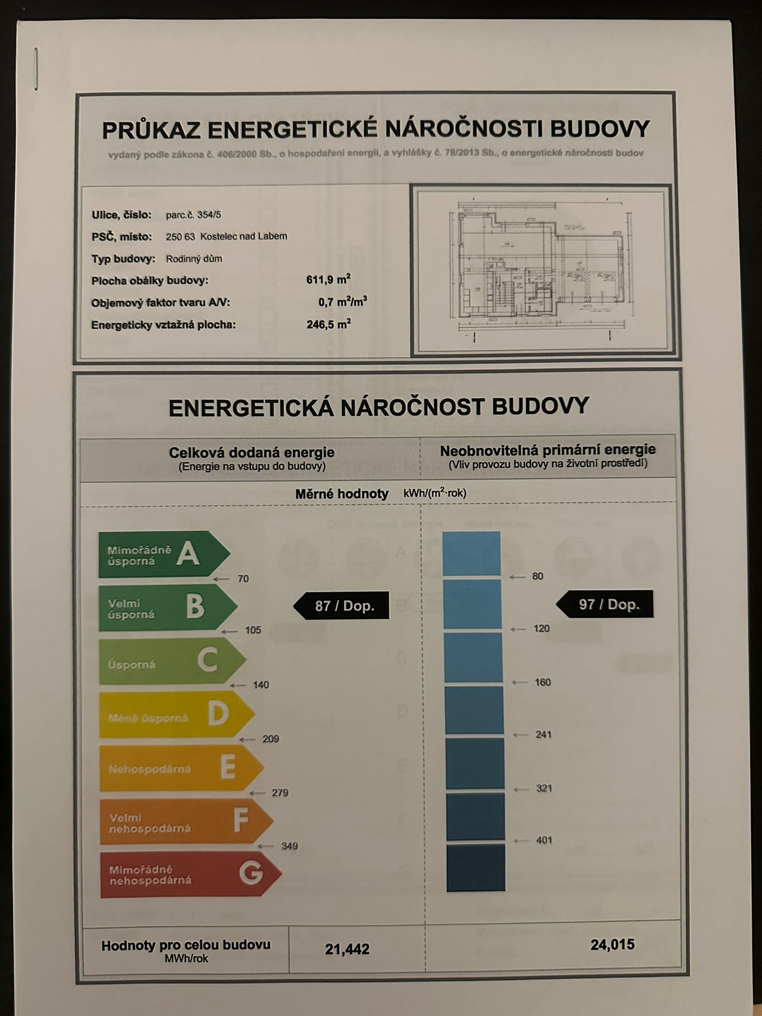 | Ukazatel ENB | 87 kWh/m2 za rok |